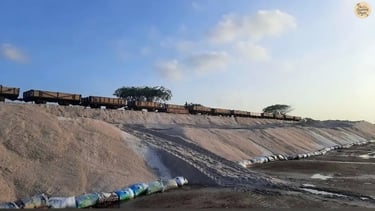 Trolley train carrying raw salt across the Sambhar Salt Lake pans.