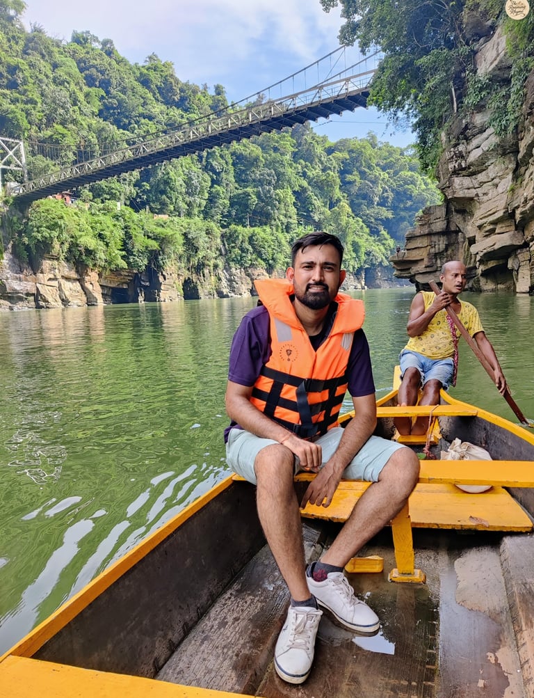 To truly enjoy this wonder, head to the union-run boat club near the BSF post, rather than taking random boats on the roadside. The boat ride here is serene and beautiful. You’ll glide across emerald waters, pass under a hanging bridge, and reach a soft sandy patch where you can step off, splash around, or just sit by the river.